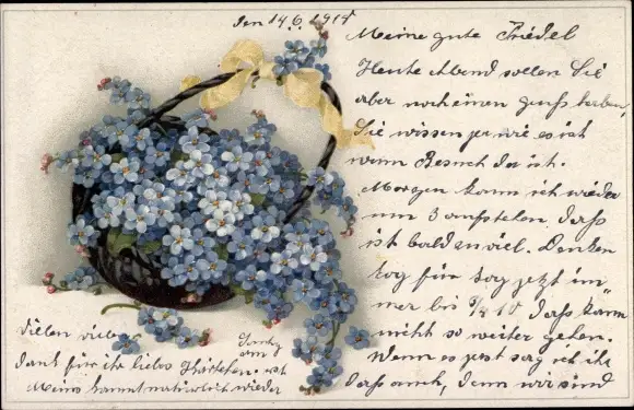 Ak Korb mit Vergissmeinnicht