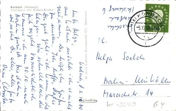 Zustand, siehe Scan, gelaufen, 1960 - ca 14 cm X 9 cm