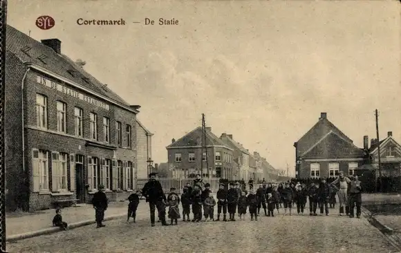 Ak Kortemark Westflandern, De Statie, Straßenpartie, Kinder