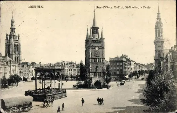 Ak Kortrijk Courtrai Westflandern, De Groote Markt, Sint Martens, Hallen, Post