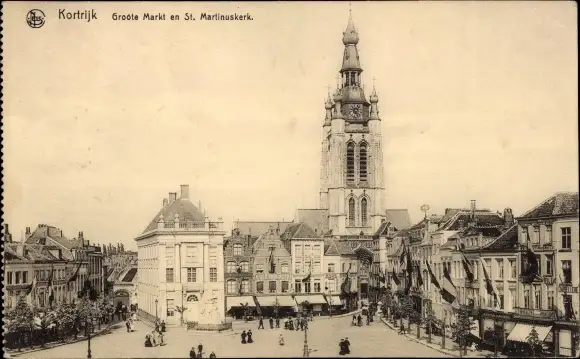 Ak Kortrijk Courtrai Westflandern, Groote Markt en St. Martinuskerk
