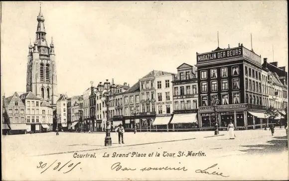 Ak Kortrijk Courtrai Westflandern, La Grand'Place et la Tour St-Martin