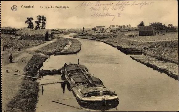 Ak Kortrijk Courtrai Westflandern, La Lys, Le rouissage