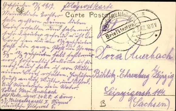 Zustand, siehe Scan, gelaufen, 1917 - ca 14 cm X 9 cm