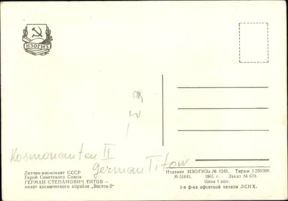 Ak Kosmonaut German Stepanowitsch Titow, Porträt