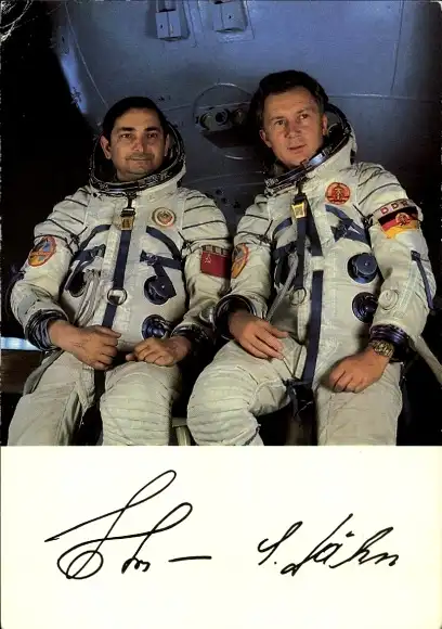 Ak Kosmonaut Waleri Fjodorowitsch Bykowski, Sigmund Jähn, Portrait, DDR