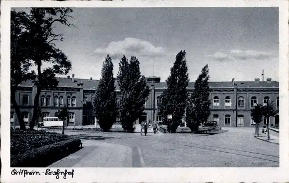 Ak Kostrzyn nad Odrą Cüstrin Ostbrandenburg, Partie am Bahnhof