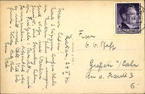 Zustand, siehe Scan, gelaufen, 1942 - ca 14 cm X 9 cm