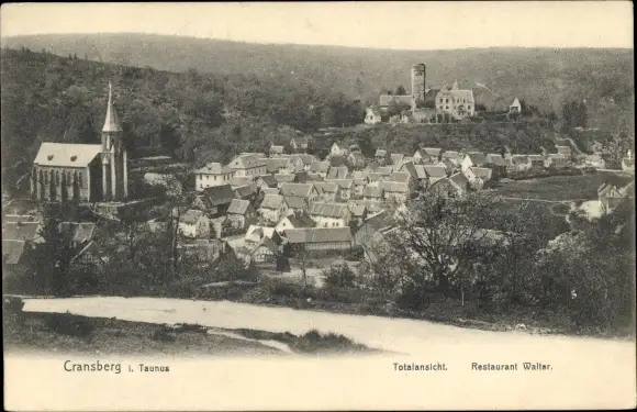 Ak Kransberg Usingen im Taunus Hessen, Totalansicht, Restaurant Walter, Kirche