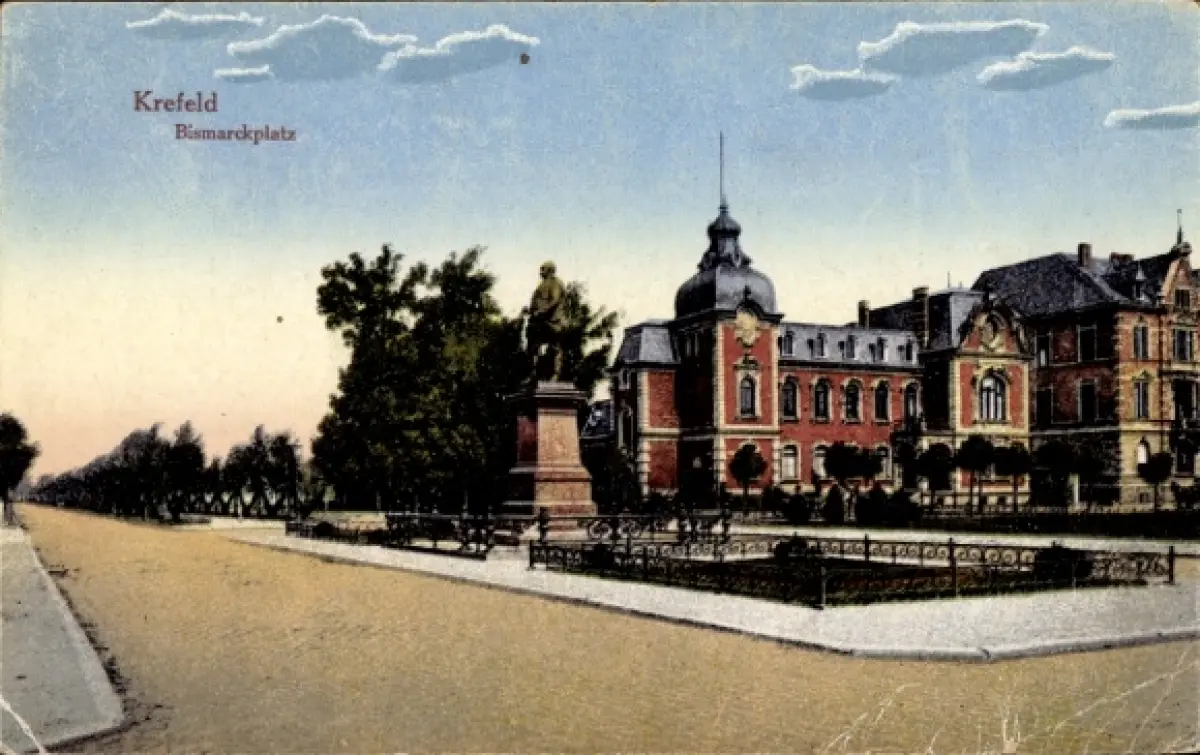 Ak Krefeld am Niederrhein, Bismarckplatz, Denkmal