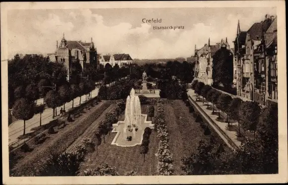 Ak Krefeld am Niederrhein, Bismarckplatz, Denkmal, Fontaine