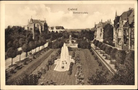 Ak Krefeld am Niederrhein, Bismarckplatz, Denkmal, Fontaine