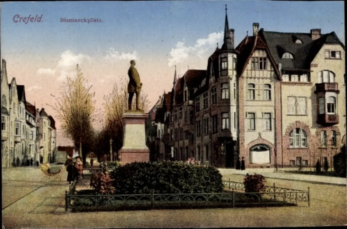 Ak Krefeld am Niederrhein, Bismarckplatz, Denkmal, Kinderwagen