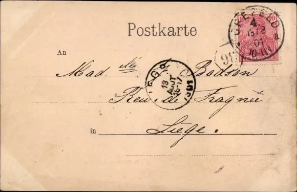 Zustand, siehe Scan, gelaufen, 1901 - ca 14 cm X 9 cm
