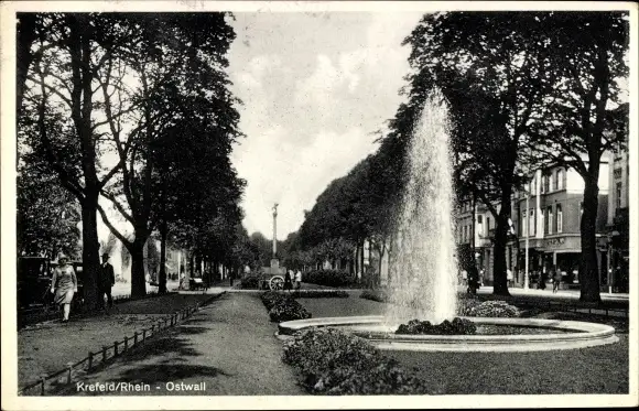 Ak Krefeld am Niederrhein, Ostwall, Springbrunnen