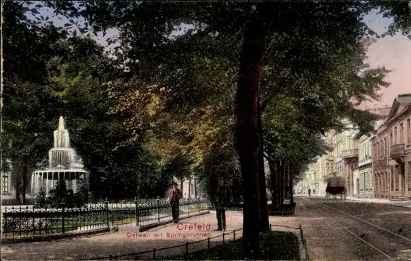 Ak Krefeld am Niederrhein, Ostwall, Springbrunnen