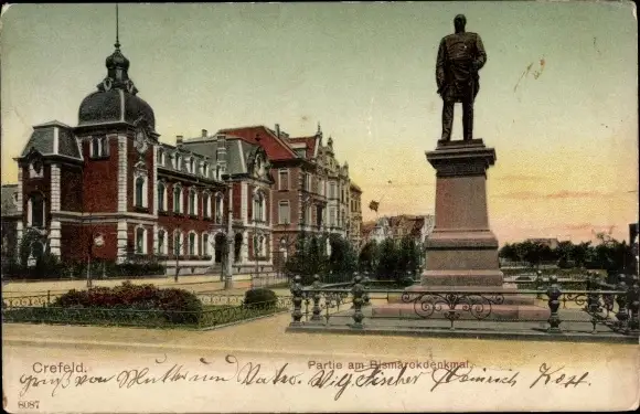 Ak Krefeld am Niederrhein, Partie am Bismarckdenkmal