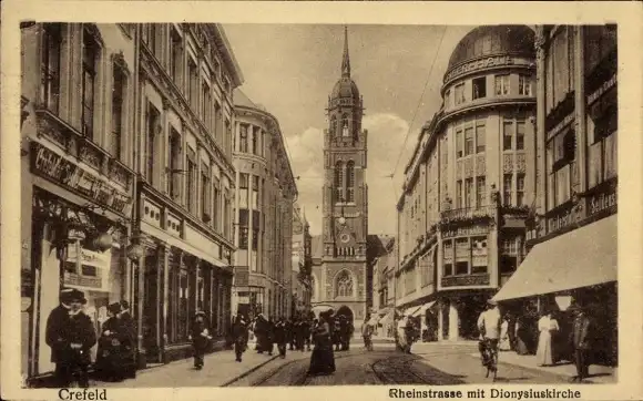 Ak Krefeld am Niederrhein, Rheinstraße, Dionysiuskirche