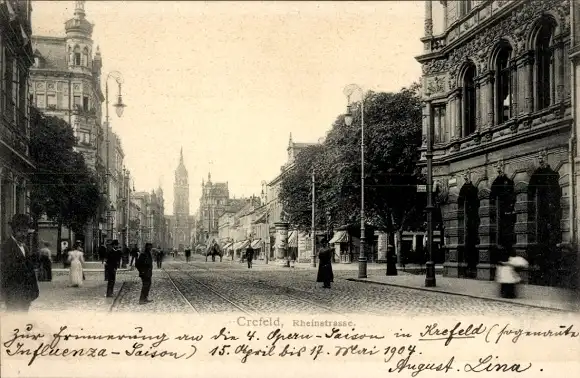Ak Krefeld am Niederrhein, Rheinstraße, Geschäfte, Passanten