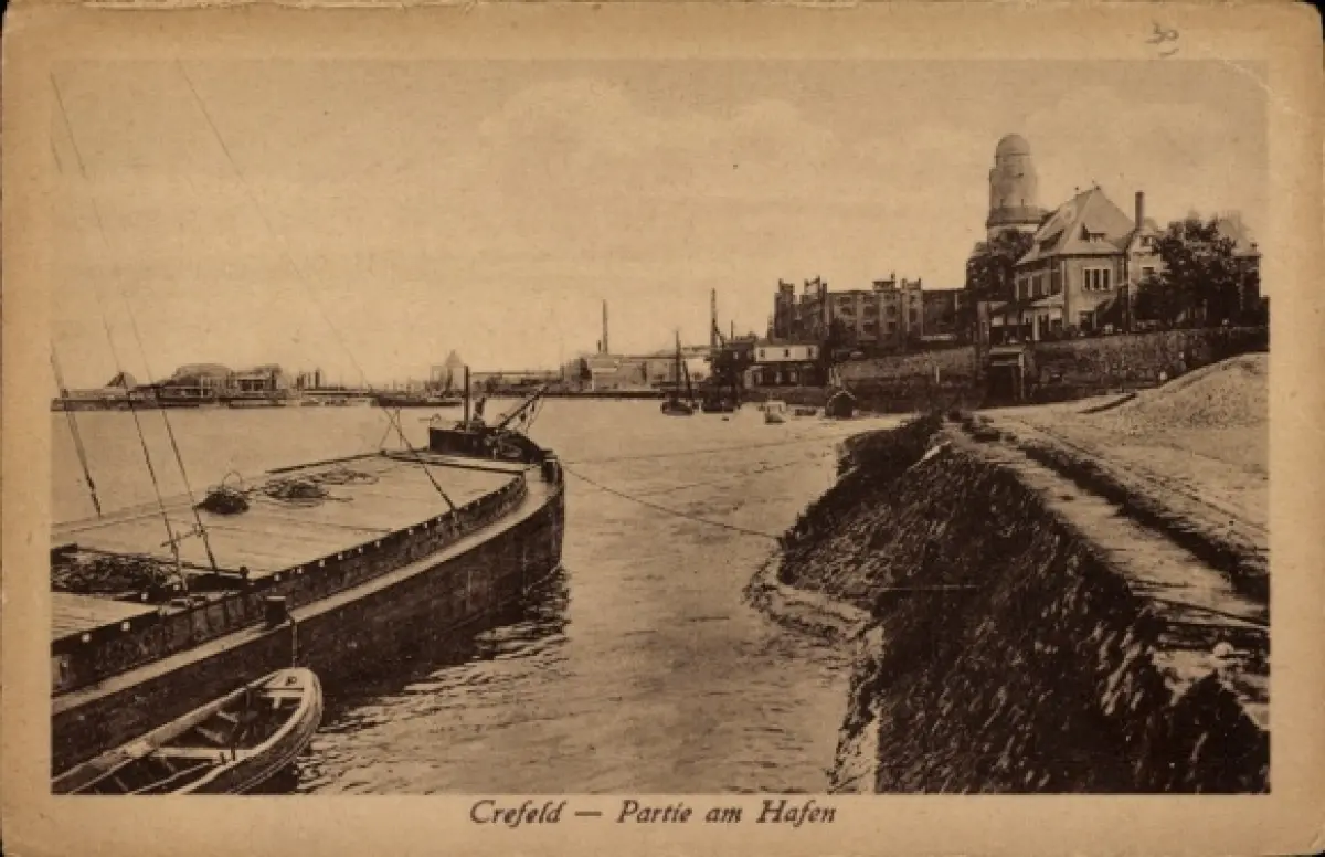 Ak Krefeld in Westfalen, Partie am Hafen, Segelboote