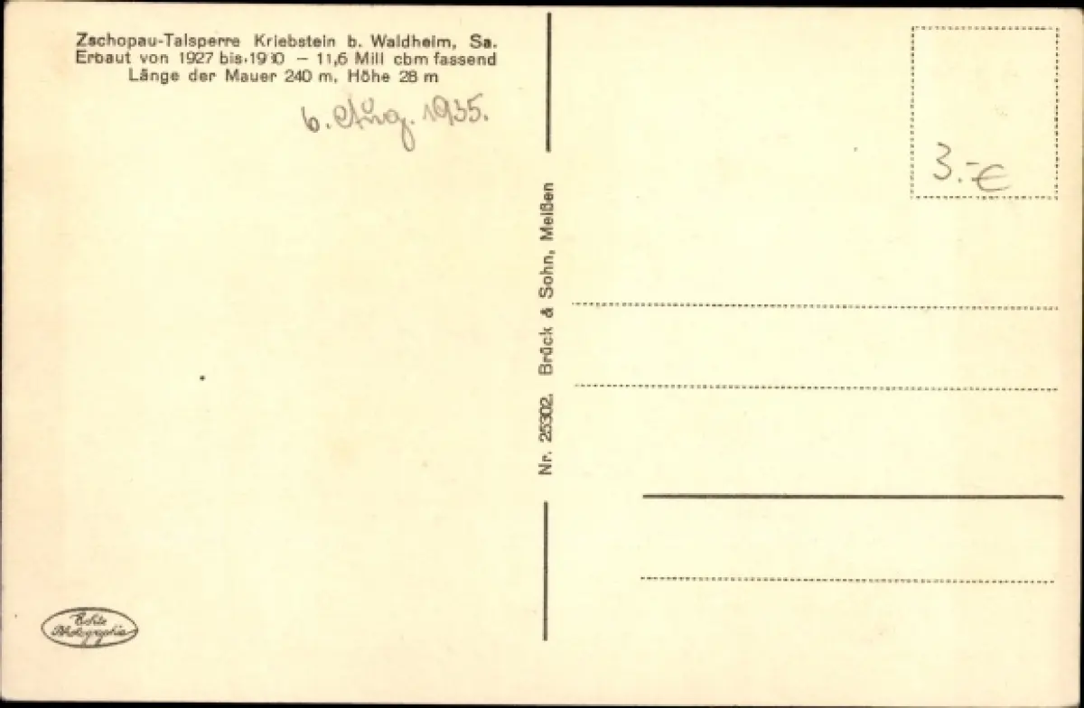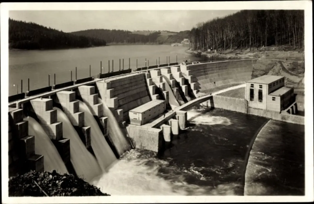 Ansichtskarte, Postkarte, Talsperre, Stausee, Staudamm, Staumauer