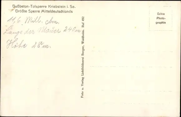 Ansichtskarte, Postkarte, Talsperre, Stausee, Staudamm, Staumauer