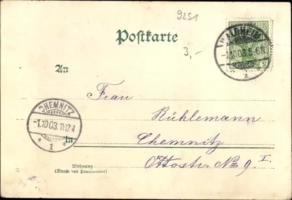 Zustand, siehe Scan, gelaufen, 1903 - ca 14 cm X 10 cm