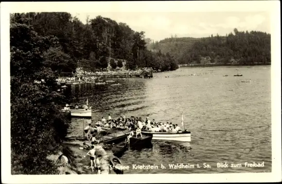 Ak Kriebstein in Sachsen, Freibad, Stausee