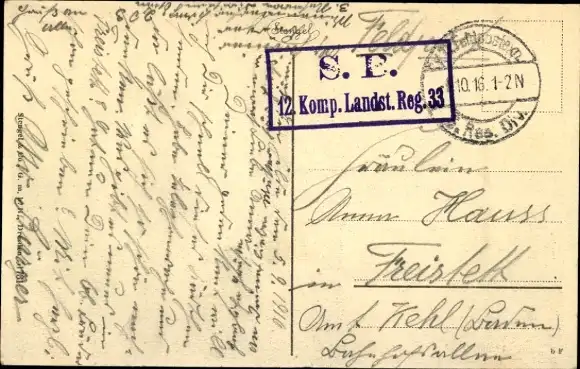 Zustand, siehe Scan, gelaufen, 1916 - ca 14 cm X 9 cm