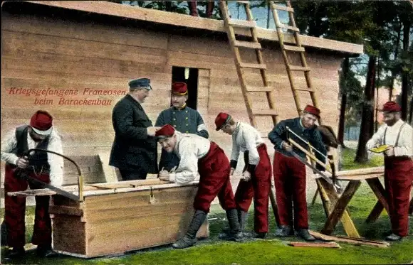 Ak Kriegsgefangene Franzosen beim Barackenbau, I. WK, Sennelager