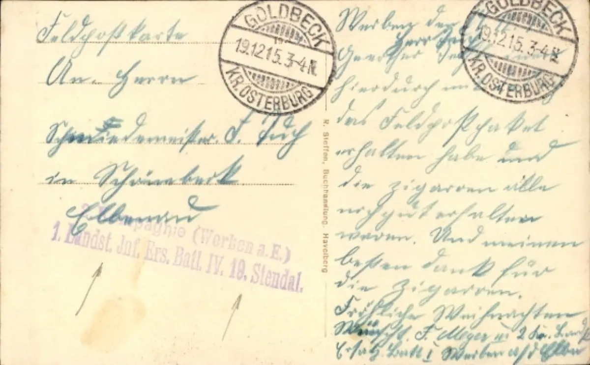 Zustand siehe Scan, gelaufen, 1915 - ca 14 cm X 9 cm
