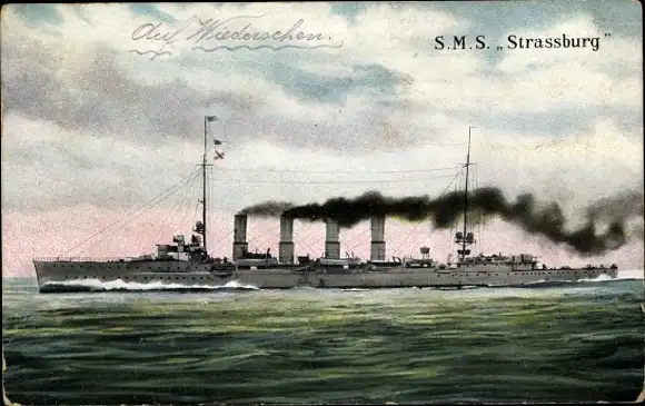 Ak Kriegsschiff SMS Straßburg, Totalansicht