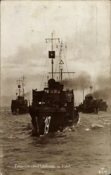 Ak Kriegsschiff Torpedoboot Halbflottille in Fahrt