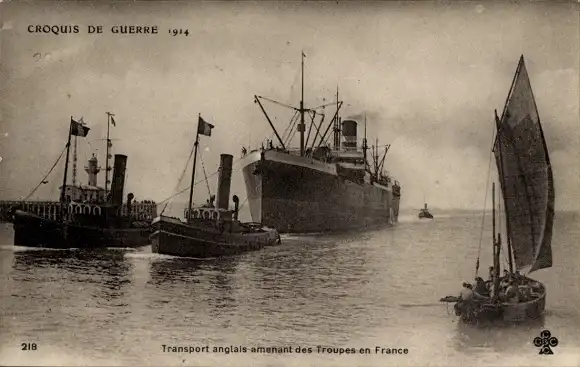 Ak Kriegsschiffe, Englischer Transport bringt Truppen nach Hause