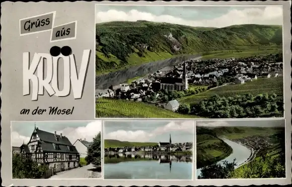 Ak Kröv an der Mosel, Totalansicht mit Umgebung, Fachwerkhaus