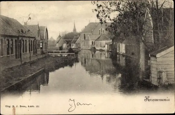Ak Krommenie Zaanstad Nordholland Niederlande, Flusspartie, Wohnhäuser