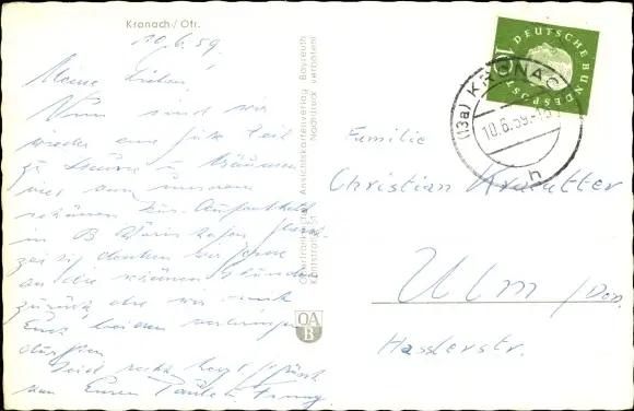 Zustand, siehe Scan, gelaufen, 1959 - ca 14 cm X 9 cm