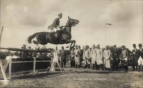 Ak Kronprinz Wilhelm in Schwerin, Springreiten, Deutsche Soldaten in Uniform