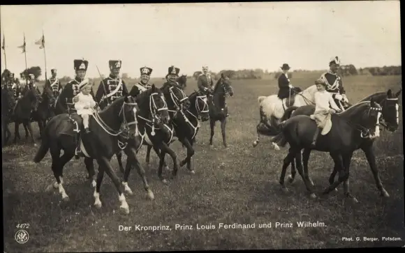 Ak Kronprinz Wilhelm von Preußen, Louis Ferdinand, Wilhelm, Pferde, Husarenuniform