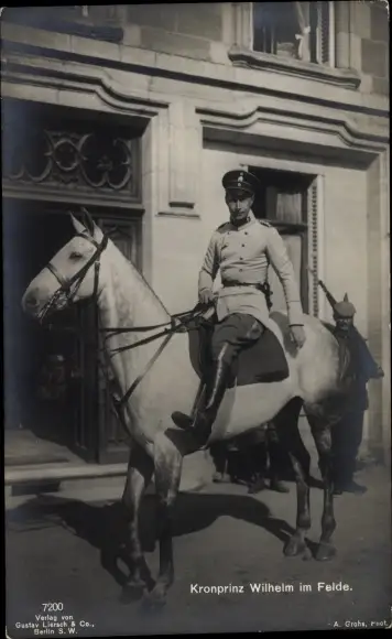 Ak Kronprinz Wilhelm von Preußen, Portrait in Uniform im Felde, Pferd, Liersch 7200