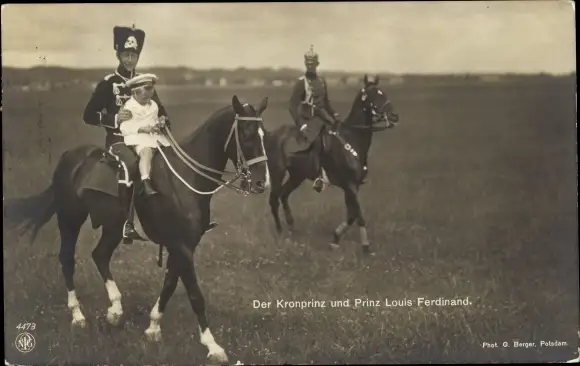 Ak Kronprinz Wilhelm von Preußen mit Louis Ferdinand, Totenkopfhusaruniform