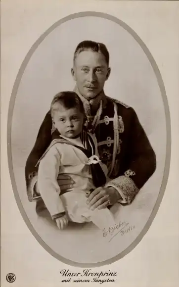 Ak Kronprinz Wilhelm von Preußen mit Sohn, Husarenuniform