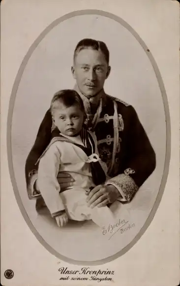 Ak Kronprinz Wilhelm von Preußen mit Sohn, Husarenuniform