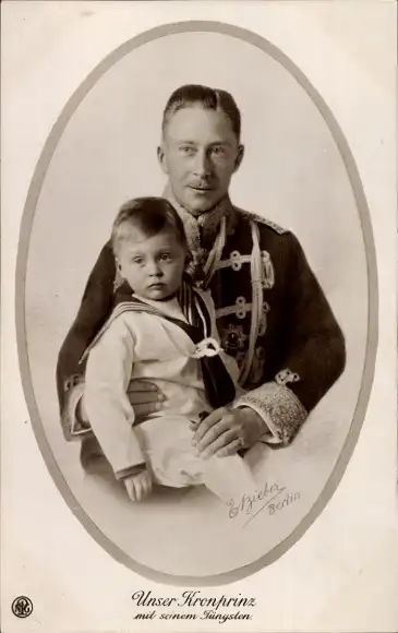 Ak Kronprinz Wilhelm von Preußen mit Sohn, Husarenuniform