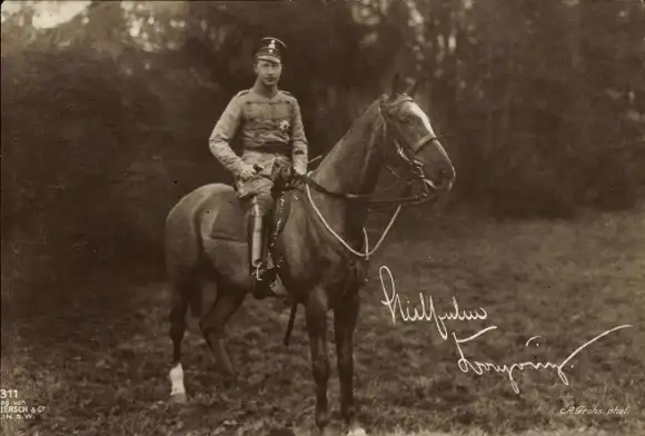 Ak Kronprinz Wilhelm zu Pferde, Porträt in Uniform