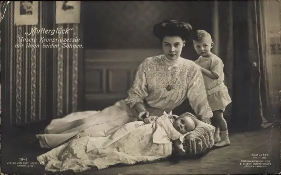 Ak Kronprinzessin Cecilie von Preußen mit ihren beiden Söhnen