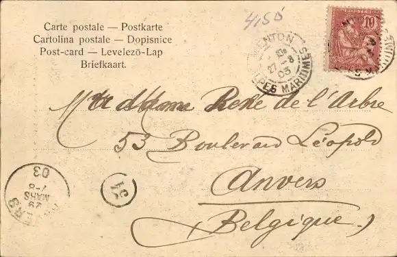 Zustand, siehe Scan, gelaufen, 1903 - ca 15 cm X 9 cm