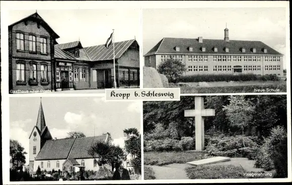Ak Kropp in Schleswig, Gasthof Zur Post, Neue Schule, Kriegerehrung, Kirche