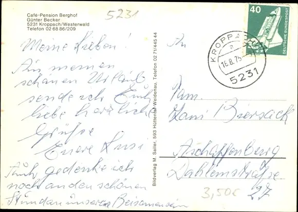 Ak Kroppach im Westerwald, Cafe Pension Berghof