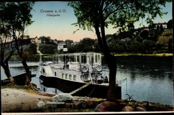 Ak Krosno Odrzańskie Crossen Oder Ostbrandenburg, Dampfschiff am Ufer der Oder